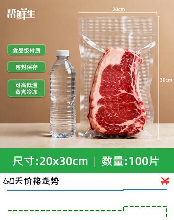 【8折】帮鲜生真空保鲜袋真空袋熟食食品级网纹路塑封袋真空封口袋20*30cm100片