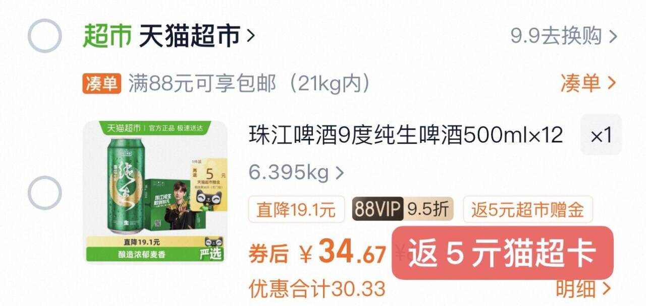 部分地区成立 vip34.6-返5卡=29.6亓 珠江9度纯生啤酒500ml*12罐 发报员 2025年11月24日 00:55 0 举报 部分地区成立vip34.6-返5卡=29.6亓珠江9度纯生啤酒500ml*12罐https://m.tb.cn/h.SD9DQxB 复制文案