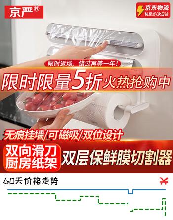 【6折】京严切割器磁吸冰箱厨房家用免撕保鲜膜罩切割盒子神器壁挂收纳保鲜膜 银白【30cm保鲜膜 双层切割器】