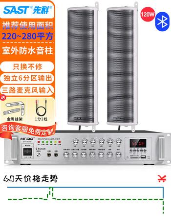 【8折】先科(SAST)SA-9019室外防水圆弧音柱120W壁挂式户外音响喇叭功放套装公共广播学校车间商场店铺音箱一拖二