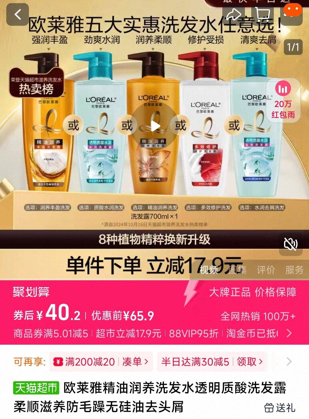 欧莱雅精油润养洗发水700ml