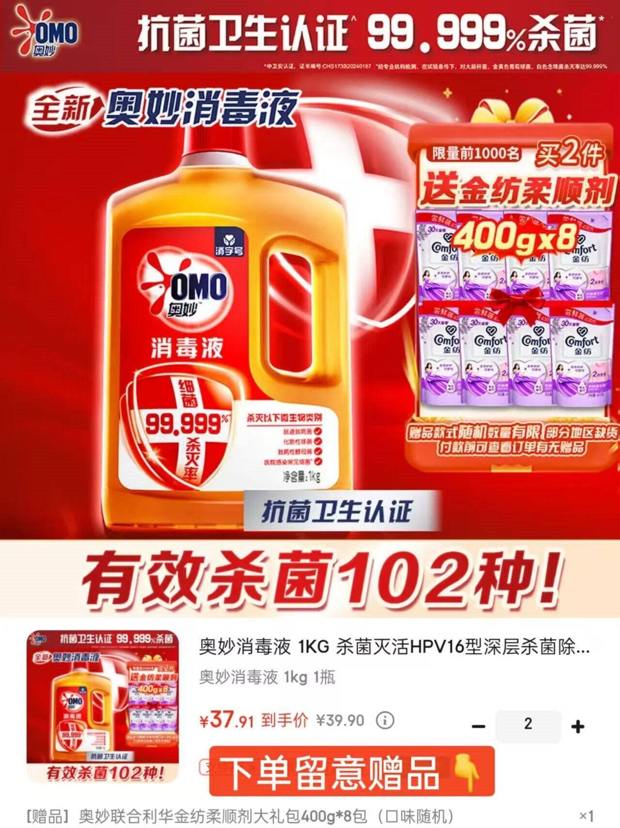 奥妙家清发車 【自营】奥妙 除菌消毒液1kg 买2件79.8亓,Plus付75.8亓 好单发报员 2025年11月25日 14:03 0 举报 ——奥妙家清发車——【自营】奥妙 除菌消毒液1kghttps://u.jd.com/WaBSUDS买2件79.8亓,Plus付75.8亓*下単贈金纺柔顺剂400g*8袋 复制文案