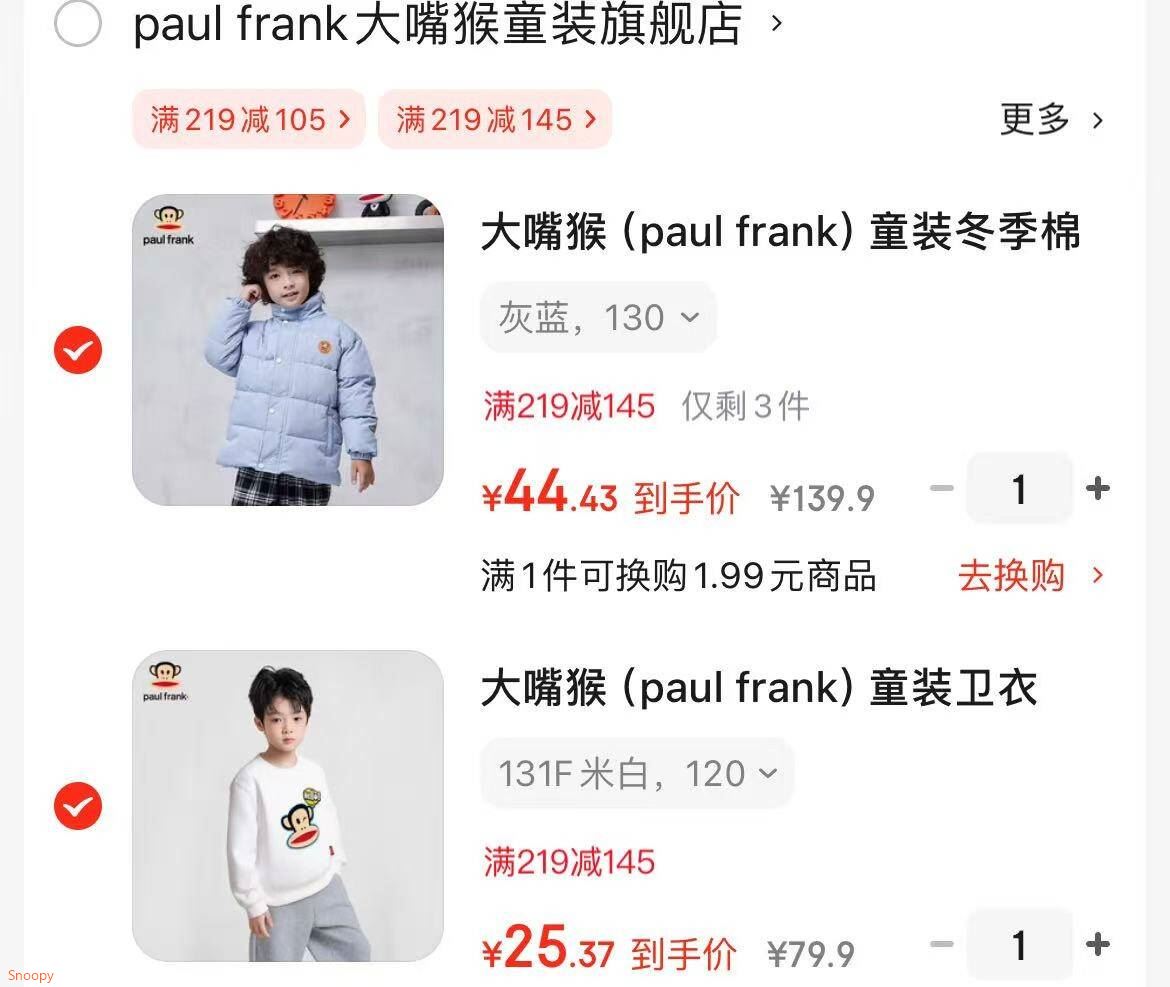 大嘴猴 童装棉服 卫衣,各拍1件 69.9 好单发报员 2025年11月26日 20:58 0 举报 领219-105 https://u.jd.com/W1A2pFB 大嘴猴 童装棉服 卫衣,各拍1件【69.9】https://u.jd.com/WGA9fahhttps://u.jd.com/WrAjPIU 复制文案