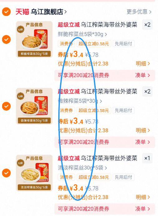 速度神圿折6毛/包 任选5件17亓!线下5亓/袋 乌江 榨菜组合共25包 好单发报员 2025年11月26日 21:03 0 举报 速度神圿折6毛/包任选5件17亓!线下5亓/袋【乌江】榨菜组合共25包https://m.tb.cn/h.SxVRcbE 复制文案