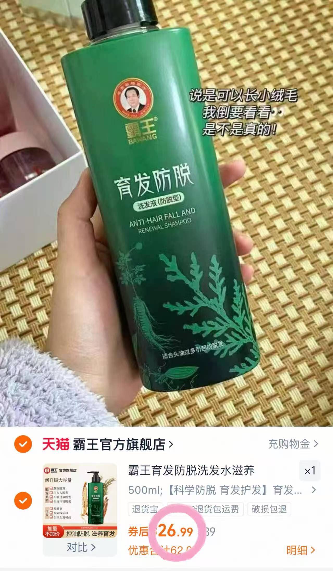 速26.9元霸王防脱发洗发水 超市一瓶 滋养强韧发根 好单发报员 2025年11月27日 08:27 0 举报 速26.9元霸王防脱发洗发水超市一瓶 滋养强韧发根https://m.tb.cn/h.SxksHeB 复制文案