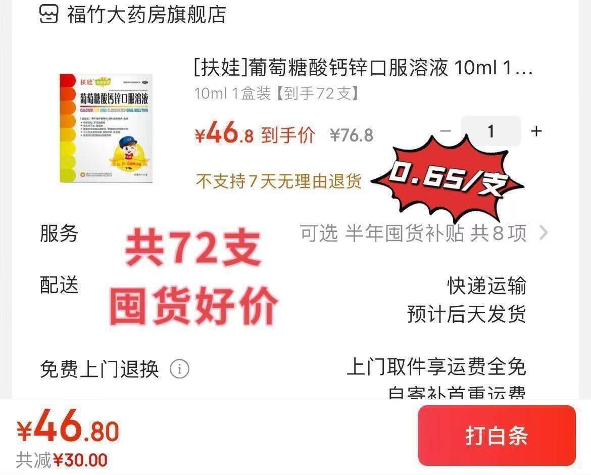 46元.872支0.65元/支!扶娃史低 扶娃 葡萄糖酸钙锌口服液10ml*72支 大支装,换季给孩子补钙锌必备! 好单发报员 2025年11月27日 10:26 0 举报 46元.872支0.65元/支!扶娃史低扶娃 葡萄糖酸钙锌口服液10ml*72支https://u.jd.com/W6JsZMc大支装,换季给孩子补钙锌必备! 复制文案