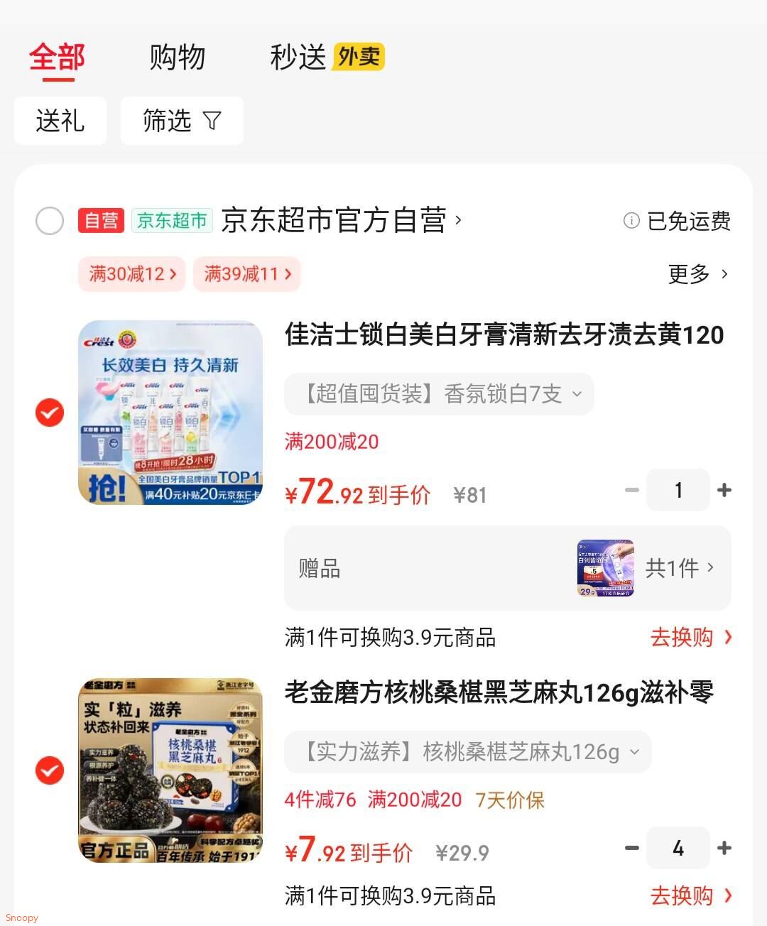 有需还能买,黑五200-20 老金磨方 核桃桑椹黑芝麻丸126g,拍4件凑后 折7.9/件 凑单参考