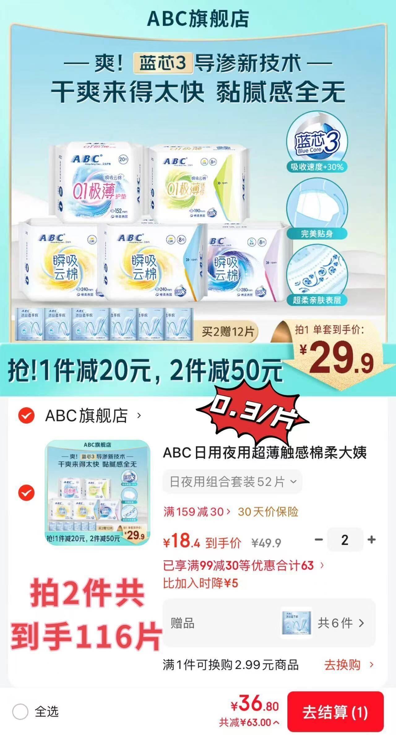 共到手116片,赠品是奢享棉日夜用超划算!