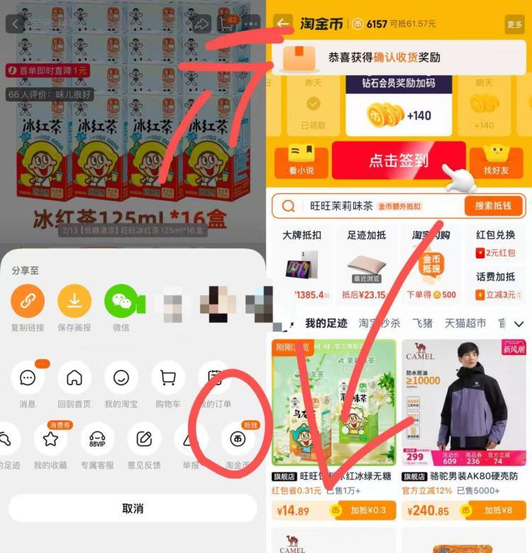 商品右上角3个点,选淘金币