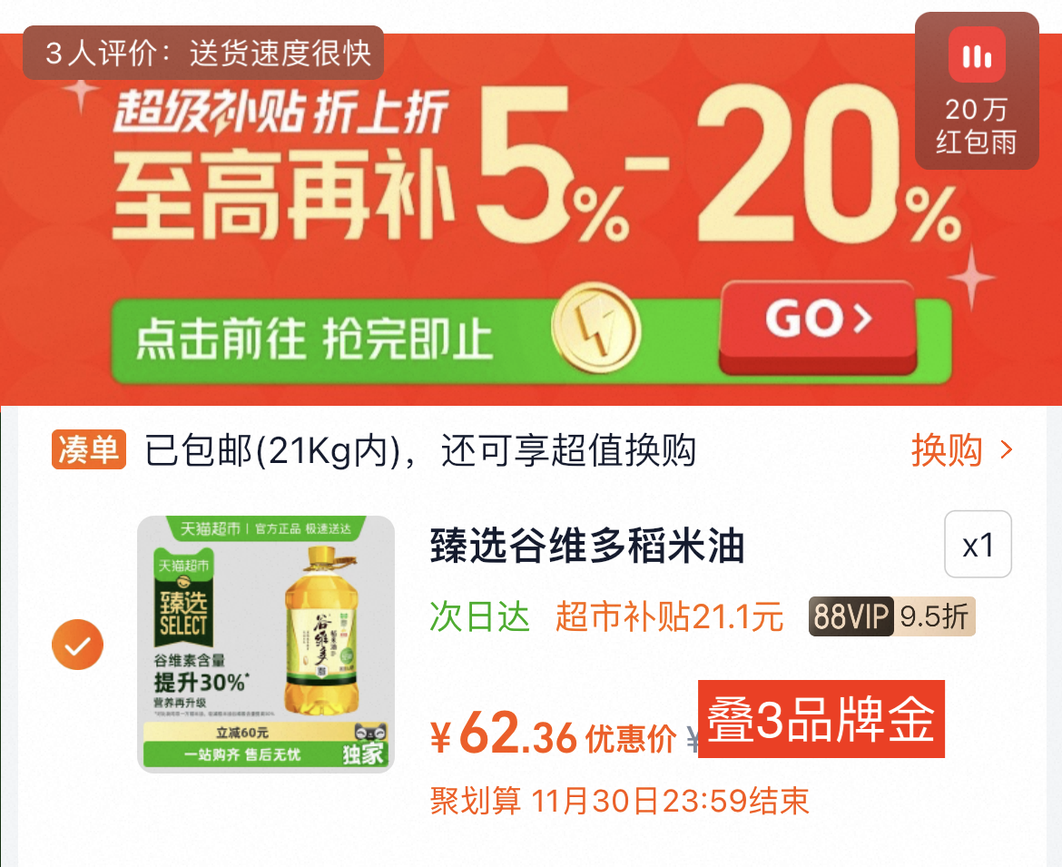 猫超 搜 鸡蛋,领3卡 - 下拉详情拍,59亓 好单发报员 2025年11月30日 12:21 0 举报 【猫超】搜 鸡蛋,领3卡-下拉详情拍,59亓金龙鱼谷维多稻米油6.08Lhttps://m.tb.cn/h.SBTrRSM 复制文案