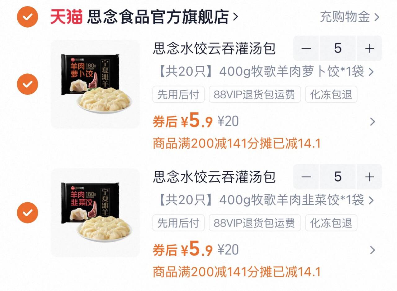 拍10件 5.9/份 思念牛羊肉水饺任选