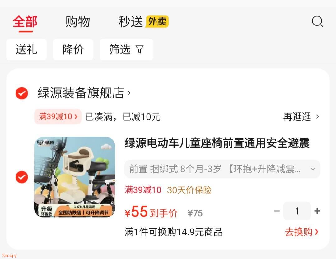 绿源 电动车儿童座椅 前置通用 环抱 升降减震,叠加10首单付【50】