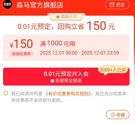 0.01亓!抢森马1000-150券