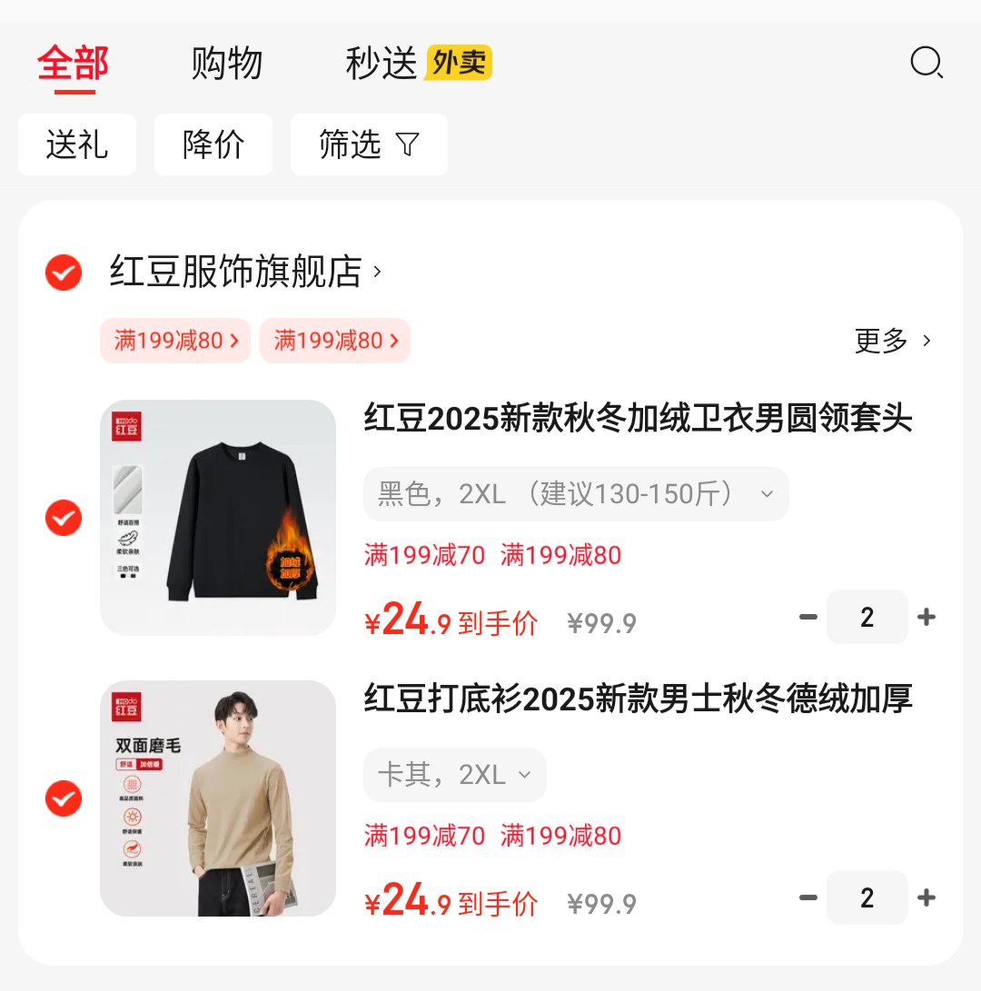 红豆 打底衫德绒加厚,拍2件【49.8】
