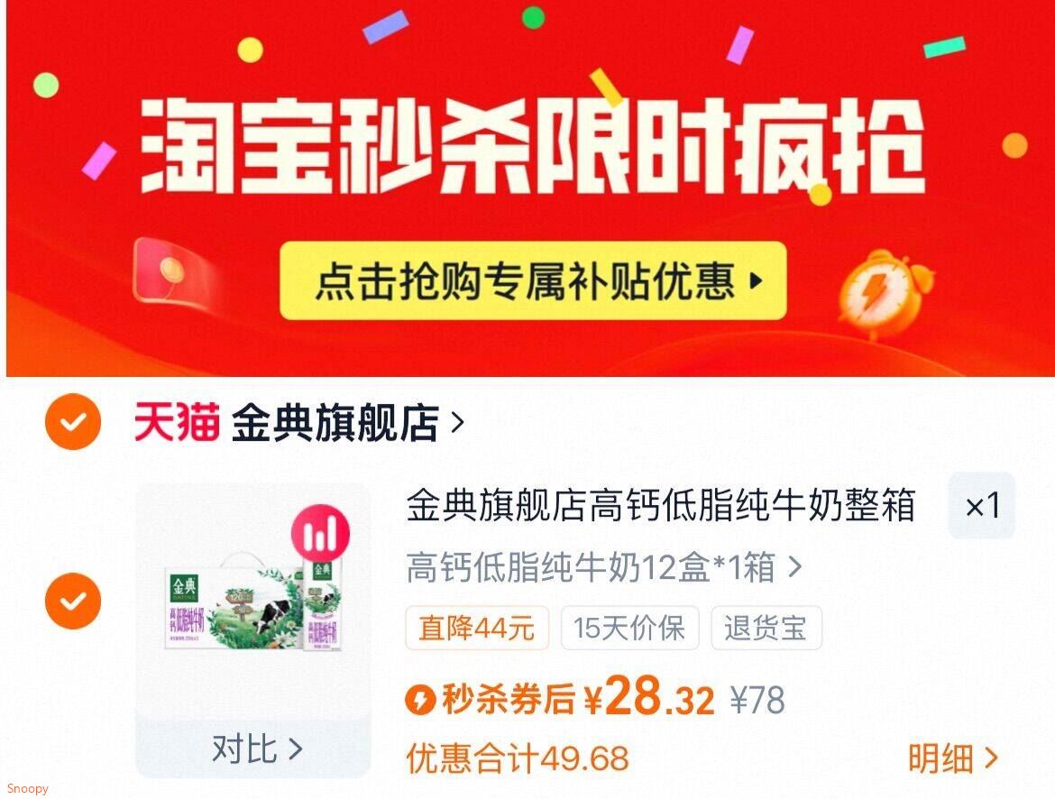 下拉详情拍 28.3亓 金典 高钙低脂纯牛奶250ml*12盒 好单发报员 2025年12月07日 10:38 0 举报 下拉详情拍 28.3亓金典 高钙低脂纯牛奶250ml*12盒https://m.tb.cn/h.7ZvJwCG 复制文案