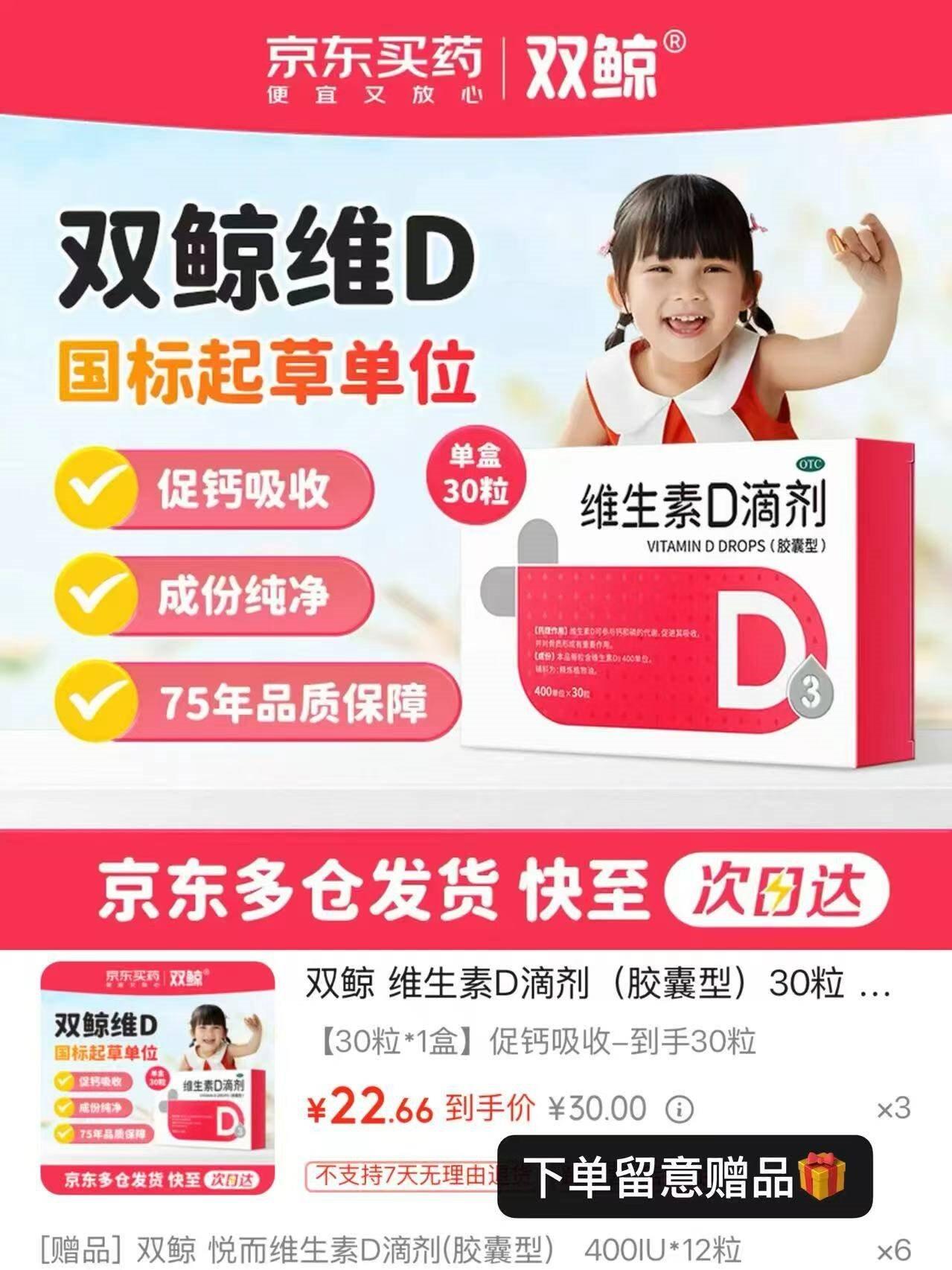 双鲸维D发車 自营 双鲸 维D3滴剂30粒 买3件68亓,再赠同款72粒好单发报员2025年12月07日 12:020举报 ——双鲸维D发車——【自营】双鲸 维D3滴剂30粒https://u.jd.com/Z6QbqBm买3件68亓,再赠同款72粒*共162粒 才0.4亓/粒 OTC版复制文案