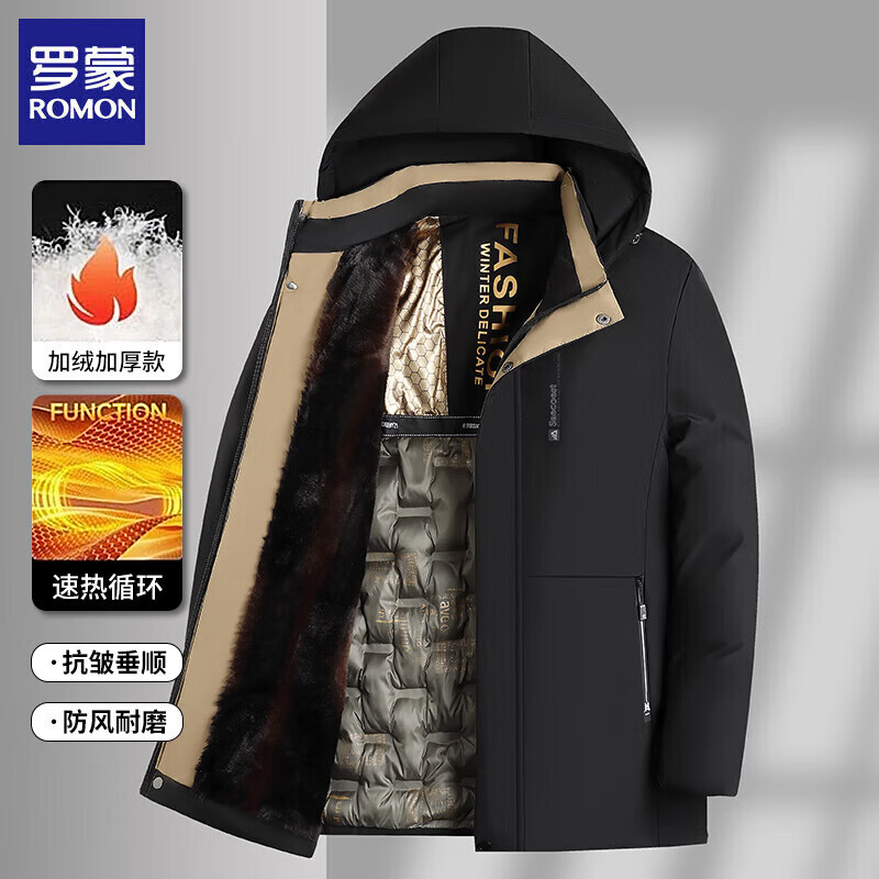 85元 罗蒙 加绒连帽棉袄爸爸装