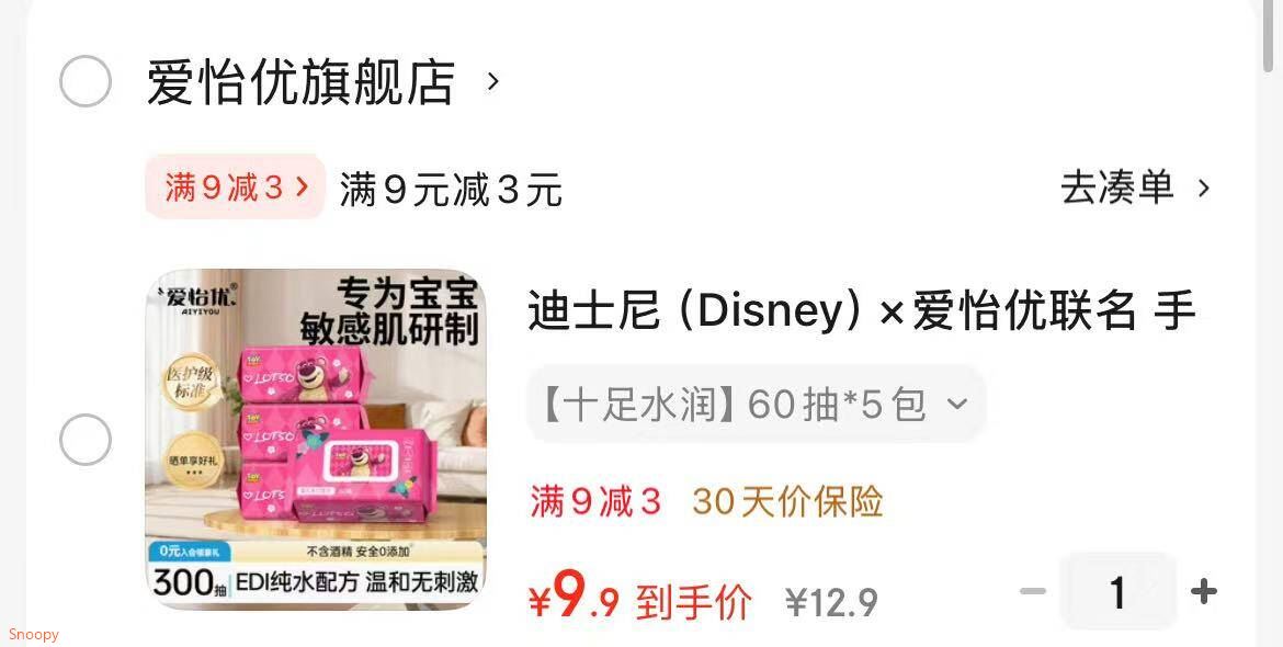 迪士尼(Disney)×爱怡优联名 手口湿巾 EDI纯水60抽*5包【9.9】