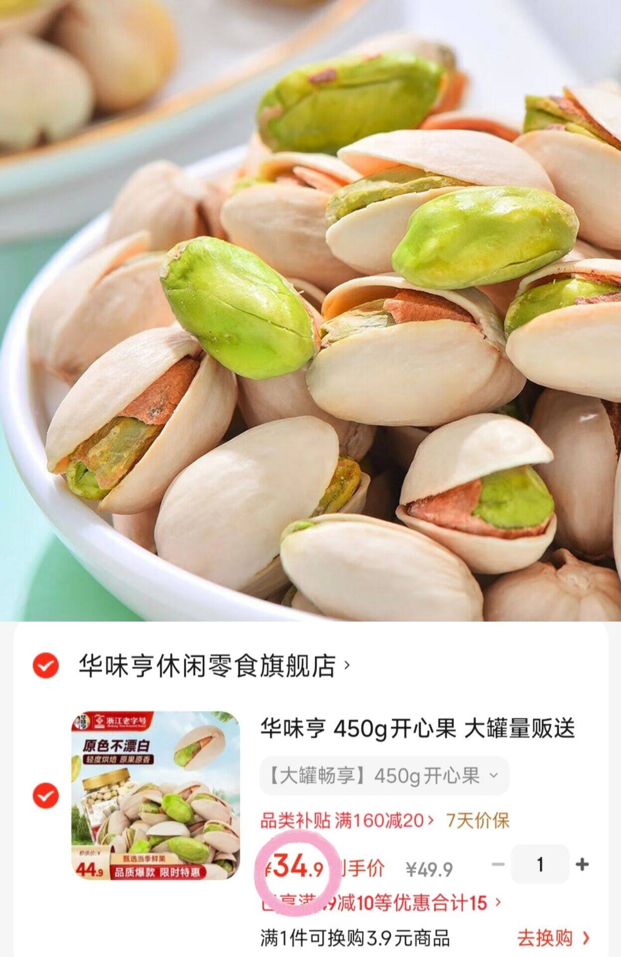 速34.9元华味亨开心果450g - 这么便宜的开心果啊!日期也非常新!!! 好单发报员 2025年12月08日 12:38 0 举报 速34.9元华味亨开心果450g-https://u.jd.com/ZD8p3hp这么便宜的开心果啊!日期也非常新!!! 复制文案