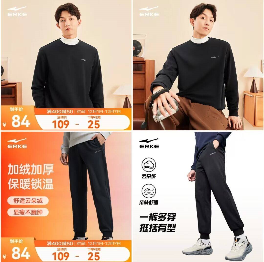 鸿星尔克 男士加绒卫衣/卫裤