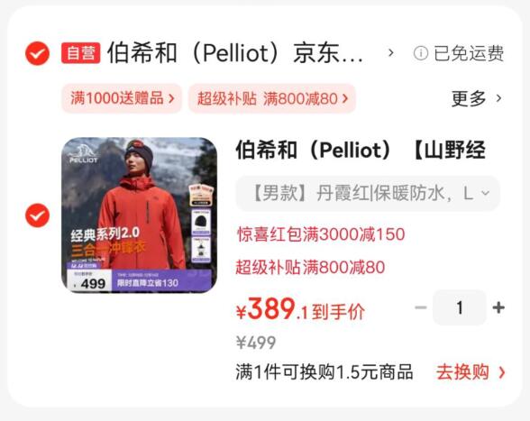 伯希和(Pelliot)【山野经典2.0】冲锋衣三合一秋冬男女户外保暖外套