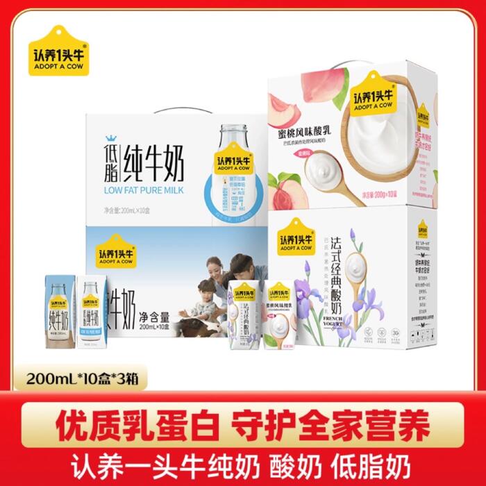 【认养一头牛】酸奶/纯牛奶10盒*3箱