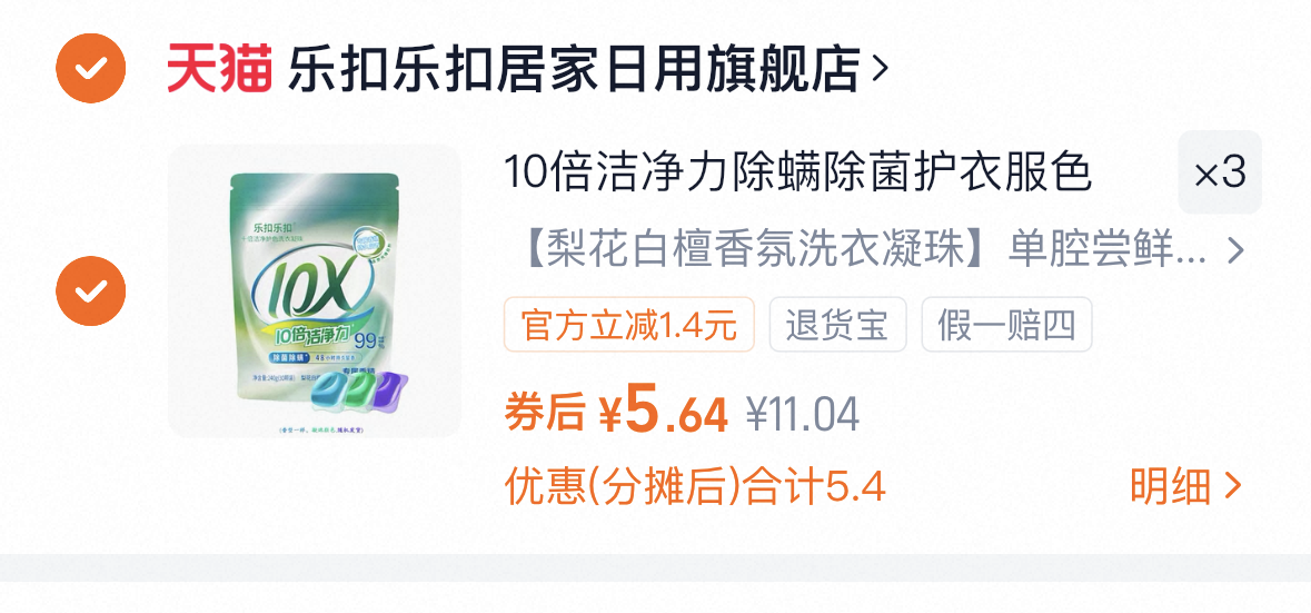 第一选项 拍3件 5.6/袋 折0.18/颗 乐扣乐扣洗衣凝珠 30颗*3袋 好单发报员 2025年12月09日 00:19 0 举报 第一选项拍3件(5.6/袋)折0.18/颗乐扣乐扣洗衣凝珠 30颗*3袋https://m.tb.cn/h.7bG0uBC 复制文案