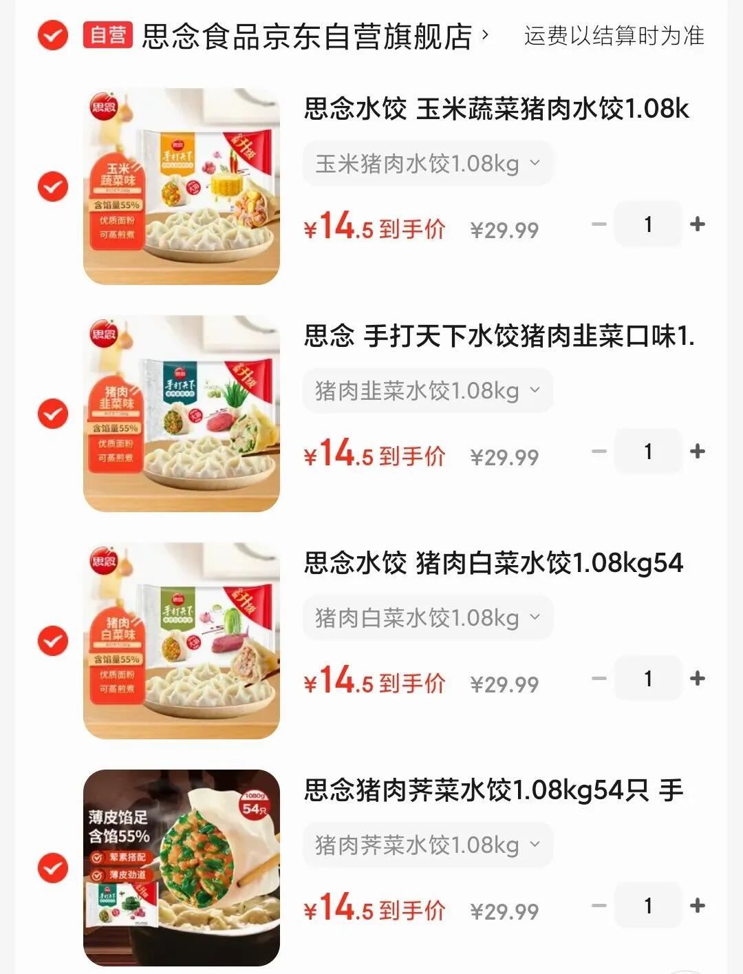 一起提交付款,最后退凑单品 饺子4件实付58元!