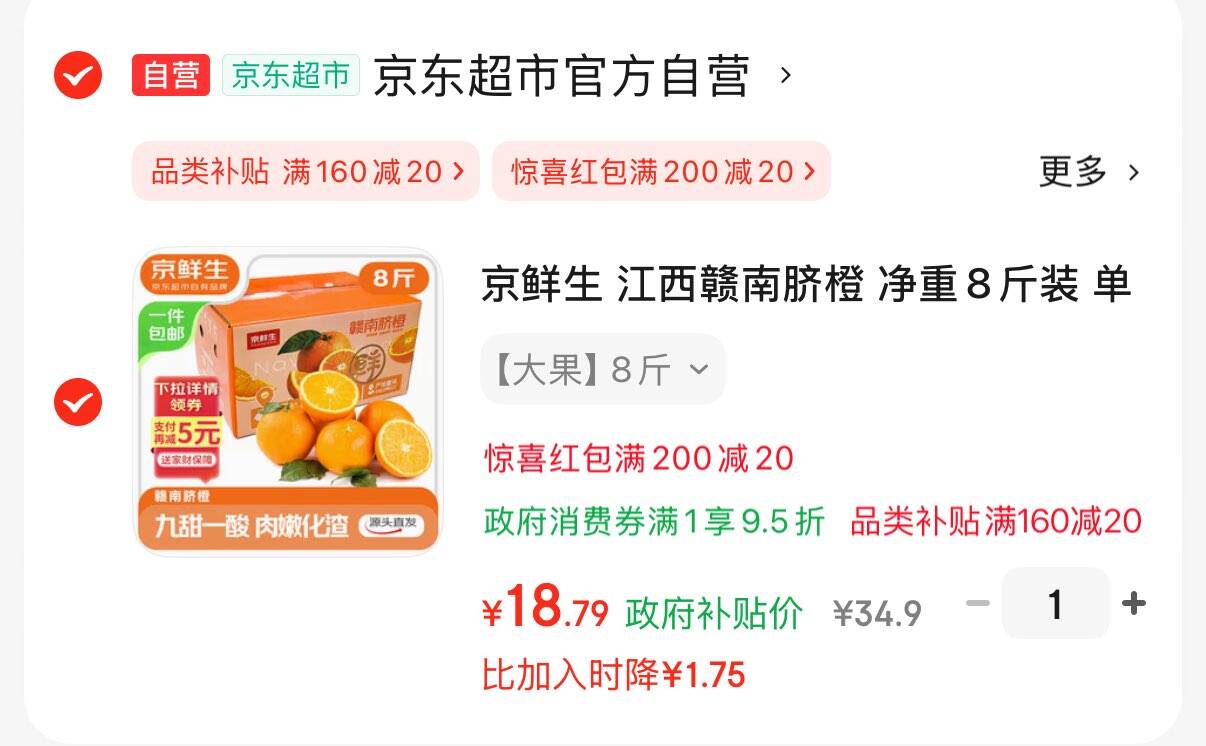 京鲜生 江西赣南脐橙8斤