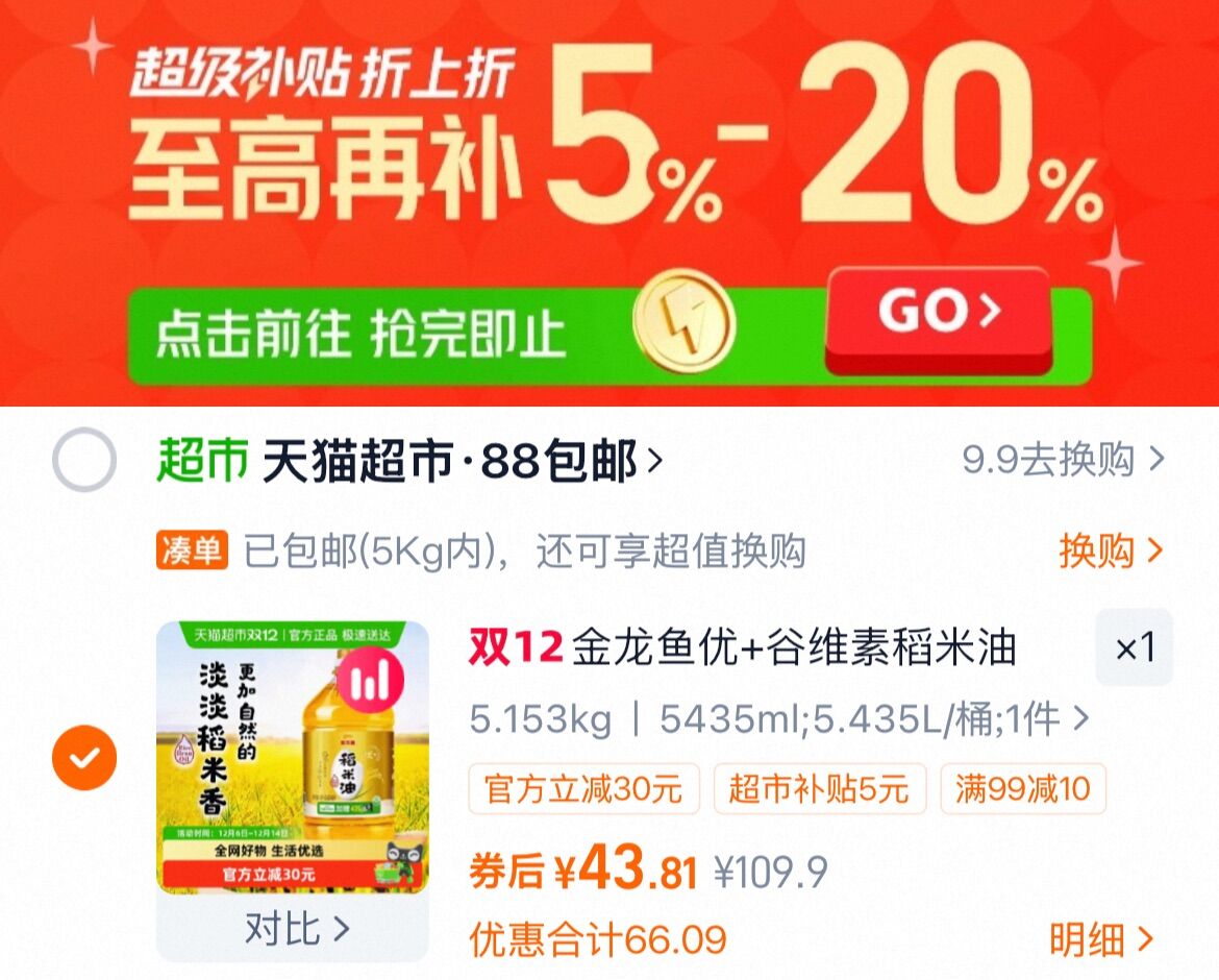 下拉详情拍,43.8亓 金龙鱼 稻米油5.435L 好单发报员 2025年12月09日 14:47 0 举报 下拉详情拍,43.8亓金龙鱼 稻米油5.435Lhttps://m.tb.cn/h.7blKZaO 复制文案