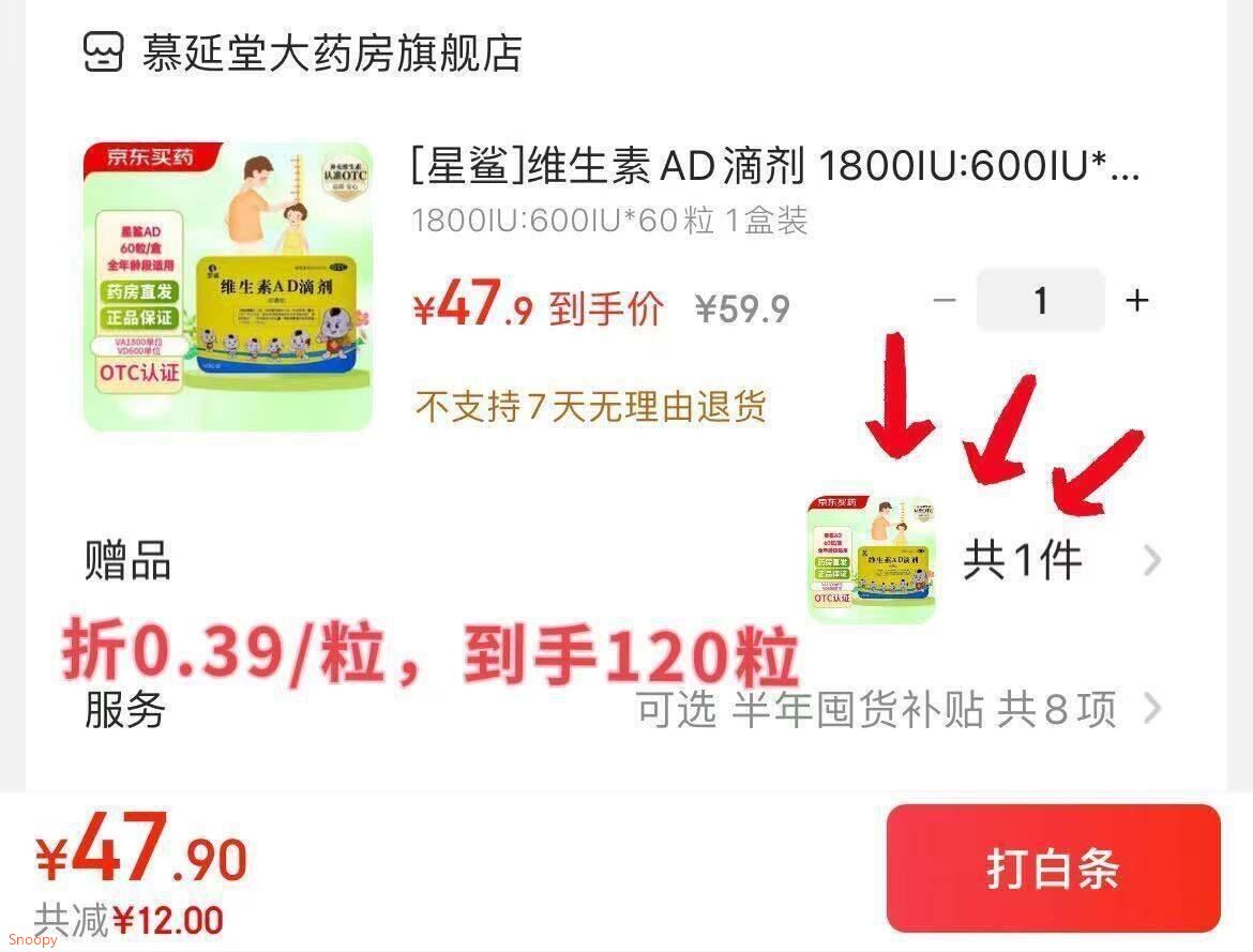 星鲨AD好价 0.39元粒!拍1赠1共2盒47.9元! 星鲨 维生素AD滴剂60粒好单发报员2025年12月09日 17:570举报 星鲨AD好价0.39元粒!拍1赠1共2盒47.9元!星鲨 维生素AD滴剂60粒https://u.jd.com/ZDgsUI3 到手共120粒 OTC版本药房发货复制文案