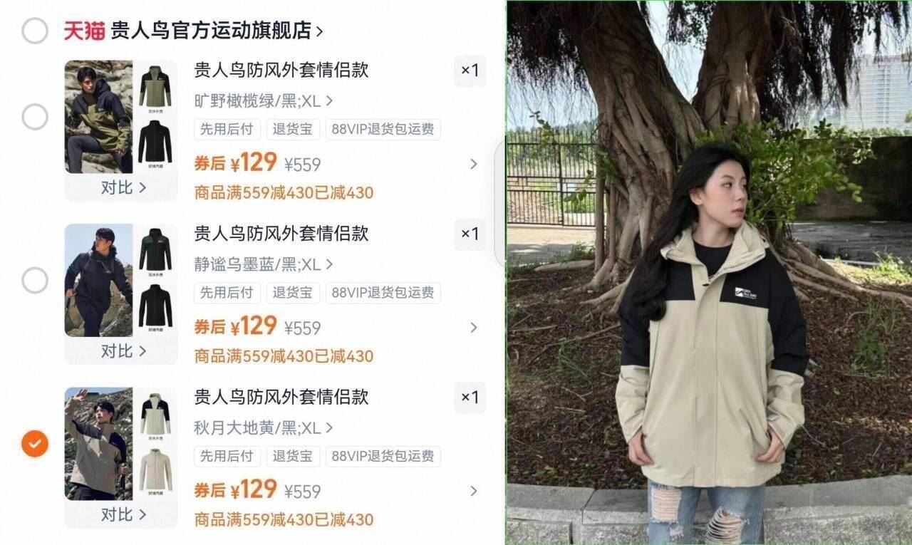 贵人鸟冲锋衣,先选尺码