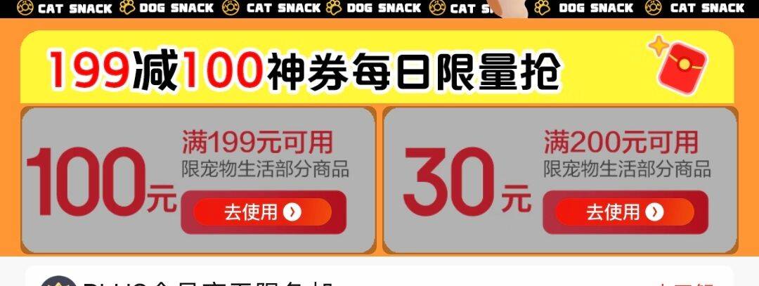 宠物199-100劵,还能领