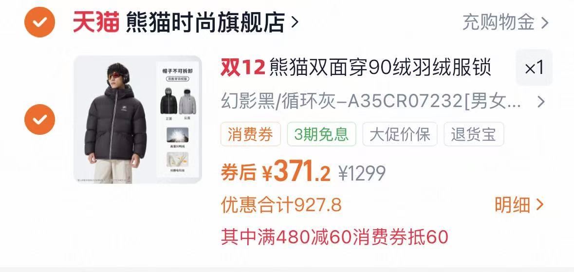 熊猫双面穿羽绒服371元 下単加赠:熊猫斜挎包*1个 熊猫时尚旗舰店好单发报员2025年12月10日 11:080举报 熊猫双面穿羽绒服371元下単加赠:熊猫斜挎包*1个【熊猫时尚旗舰店】叠加消费券 礼金价格才对https://m.tb.cn/h.71r3fUD复制文案