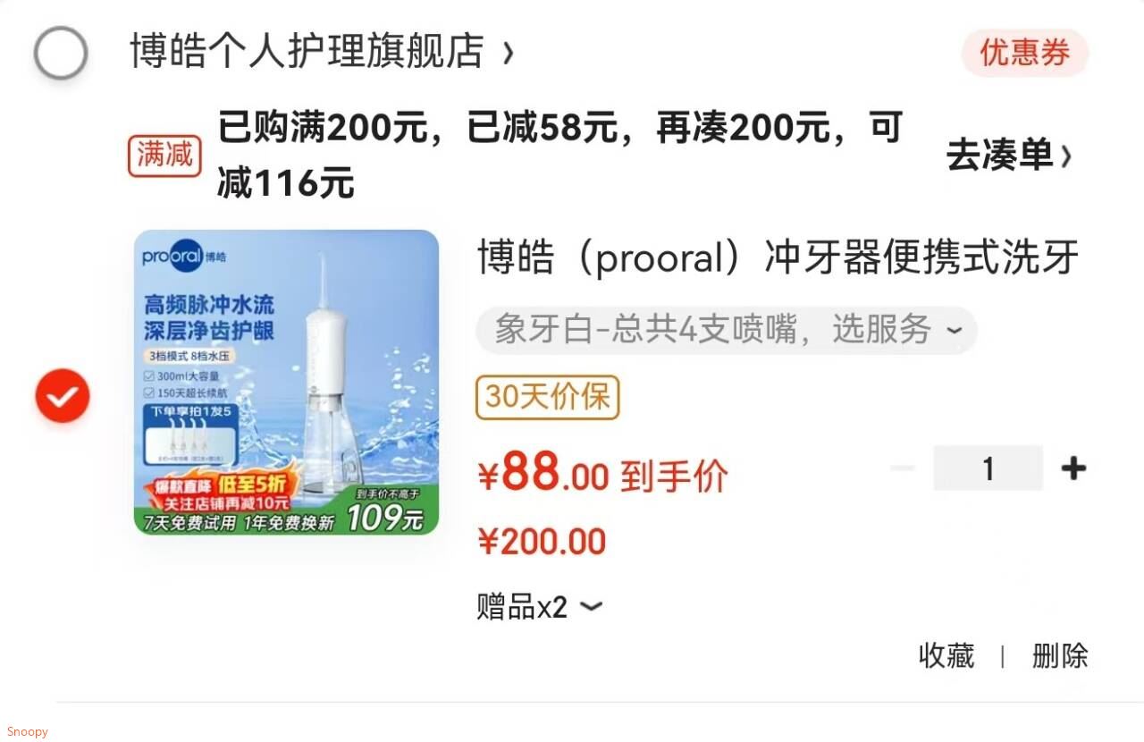小家电88折券 博皓 prooral 冲牙器便携式洗牙器F38共4支喷嘴 88 晒图返10元好单发报员2025年12月10日 12:460举报 小家电88折券 https://u.jd.com/Z13t3AU 博皓 (prooral)冲牙器便携式洗牙器F38共4支喷嘴【88】晒图返10元 https://u.jd.com/ZO389iP 复制文案