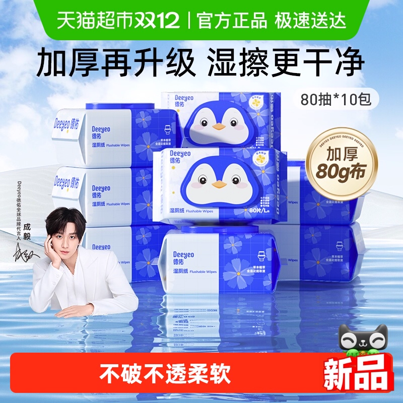 63.67元 88vip叠金币 德佑金盏花湿厕纸80抽*10包 -