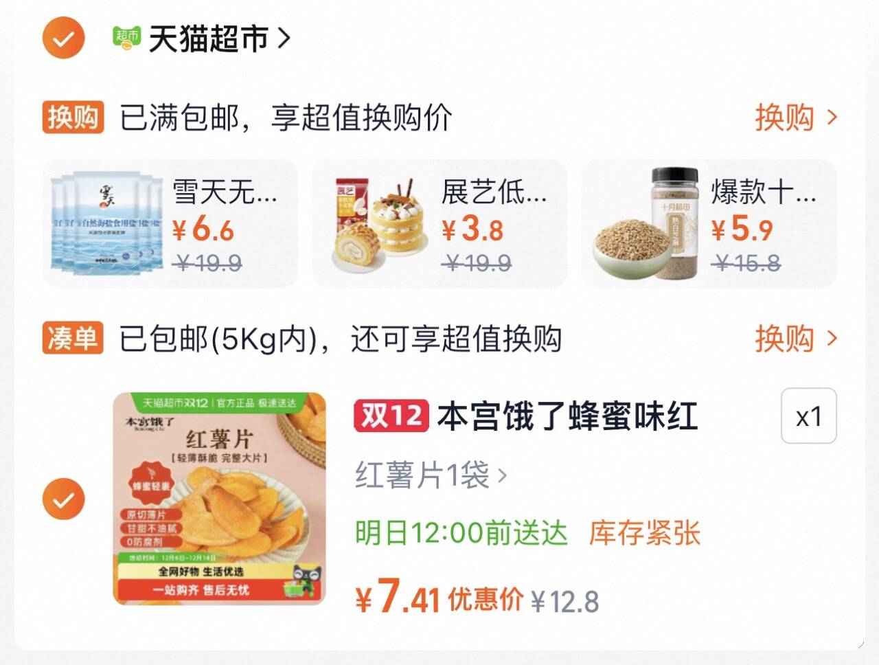 本宫饿了烤红薯片,vip价7.4元 破运费低价包邮 需领券点“去抵扣”金币频道重新加购 好单发报员 2025年12月11日 16:12 0 举报 本宫饿了烤红薯片,vip价7.4元https://m.tb.cn/h.7cqAvkN破运费低价包邮需领券点“去抵扣”金币频道重新加购 复制文案