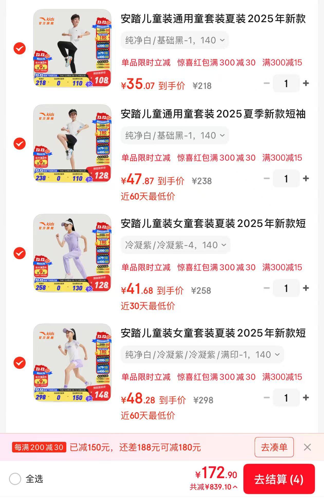 商品下1000-180,各拍一件,172.9