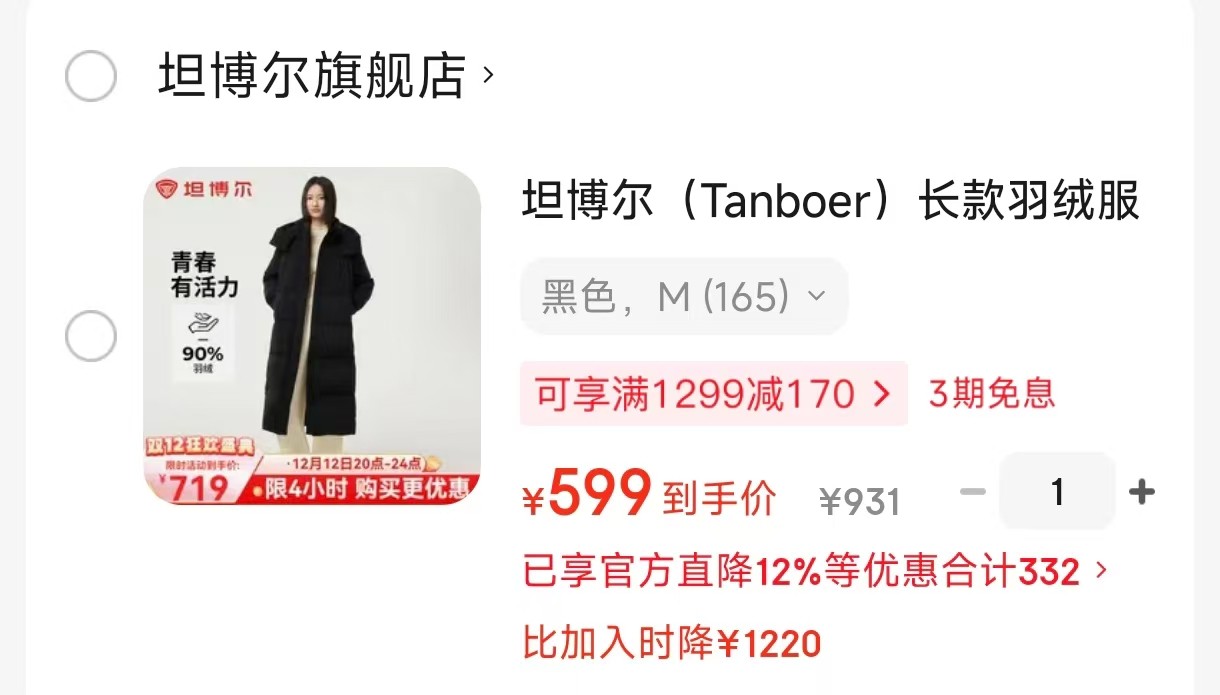 坦博尔 (Tanboer)长款羽绒服女过膝可脱卸帽冬天保暖加厚外套【599】