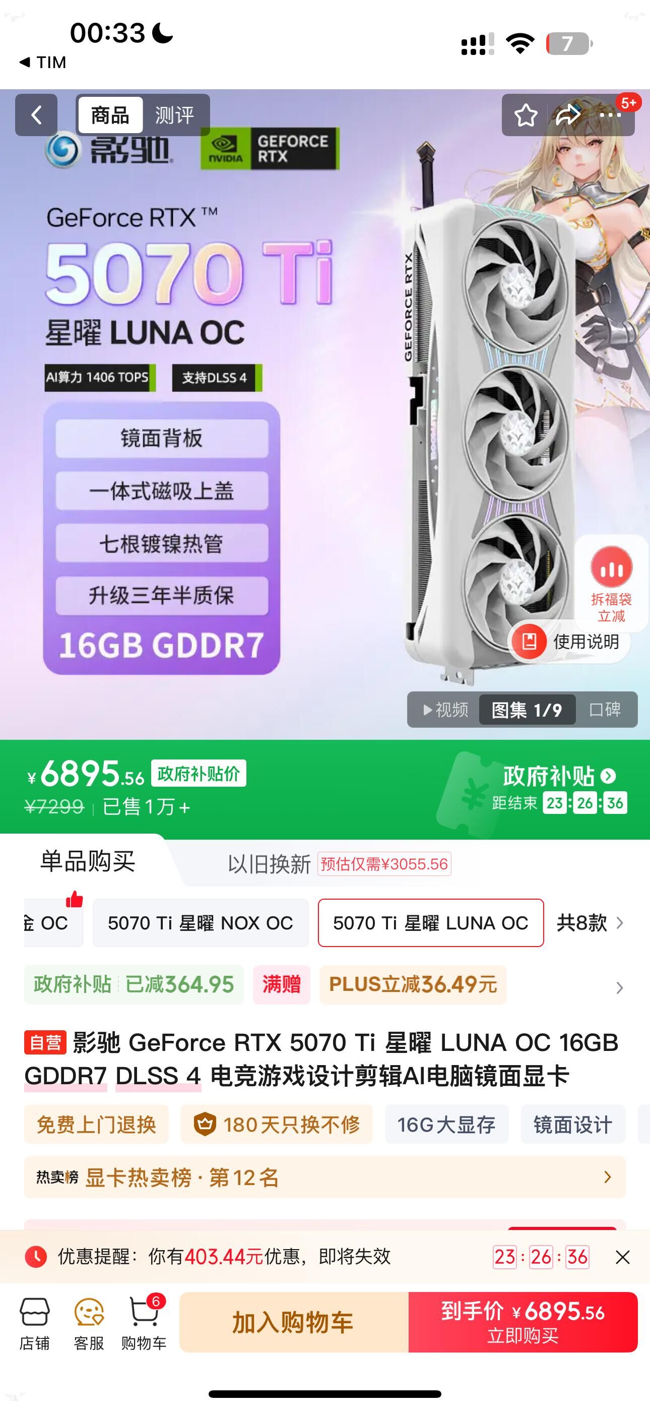 自营 影驰5070ti星耀 ,6895