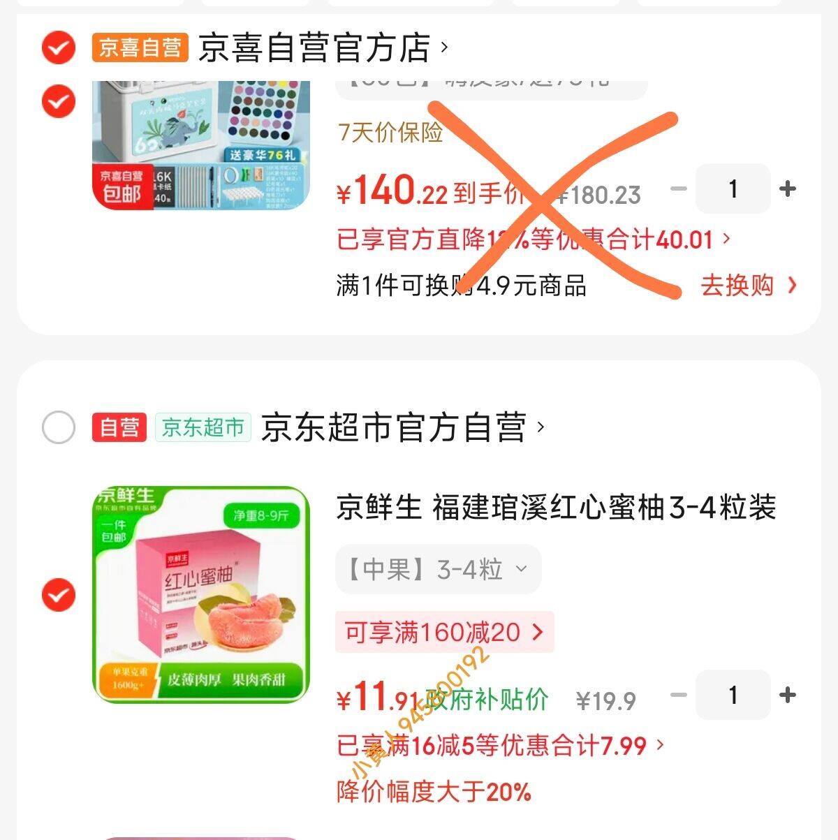 京鲜生 福建琯溪红心蜜柚3-4粒装 净重8-9斤,11.9 好价