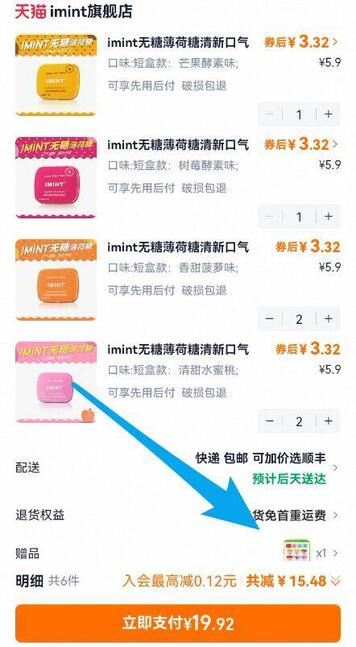 【imint】无糖薄荷糖共16g*7盒