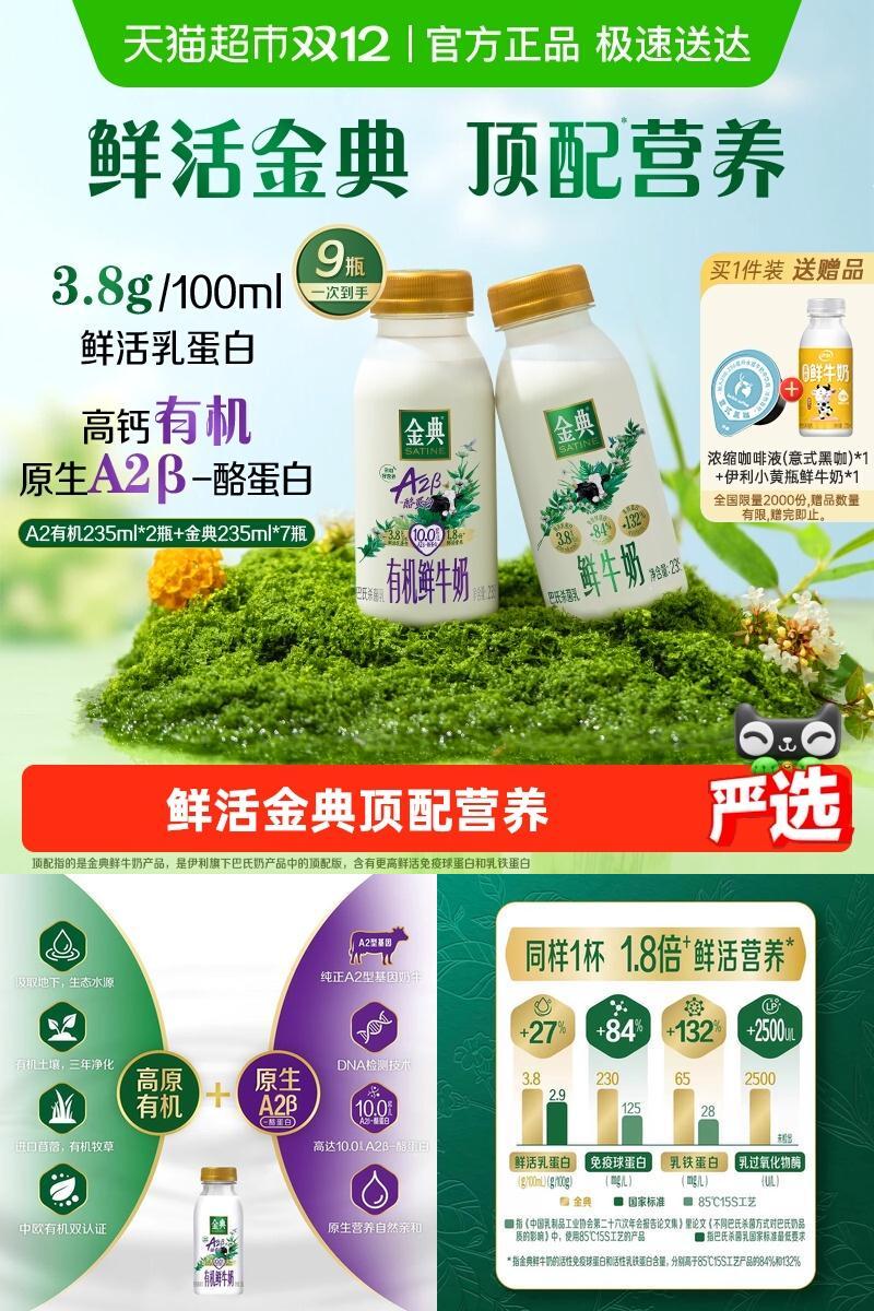 98元 天猫超市 伊利金典A2有机鲜牛奶
