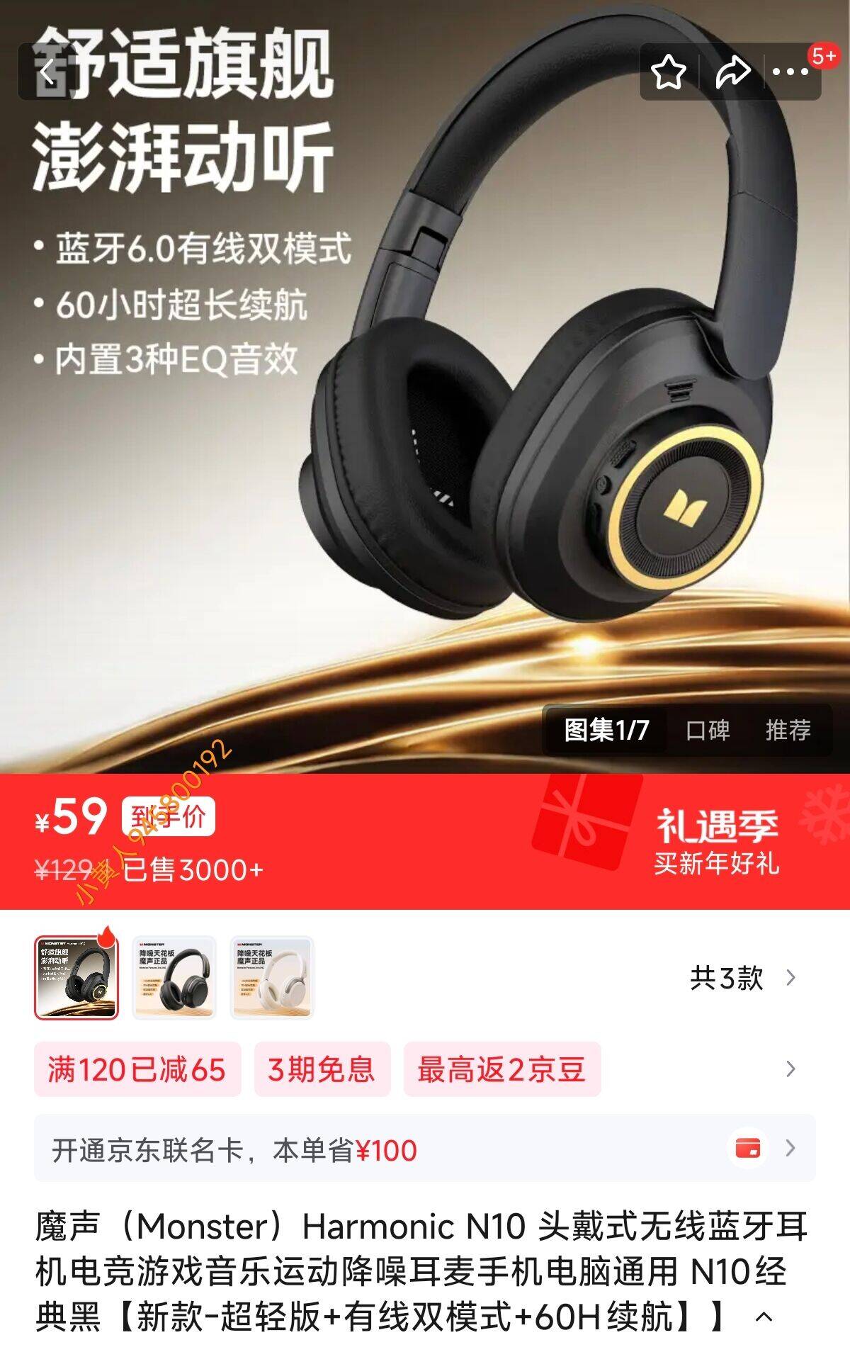 魔声 Harmonic N10 头戴式无线蓝牙耳机,59 领券 美的 智能监控器摄像头M3,晒返5到手134