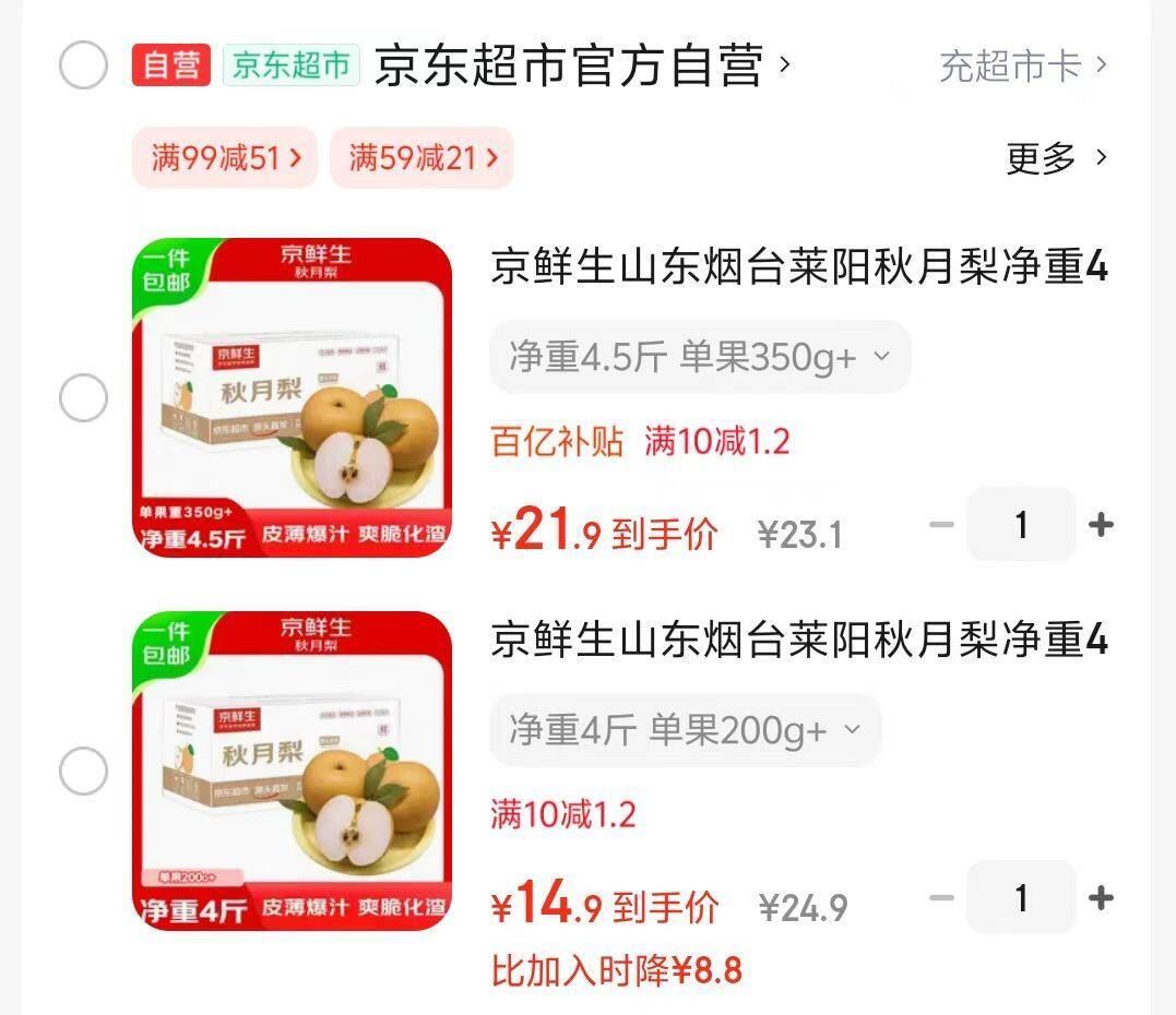 京鲜生山东烟台莱阳秋月梨