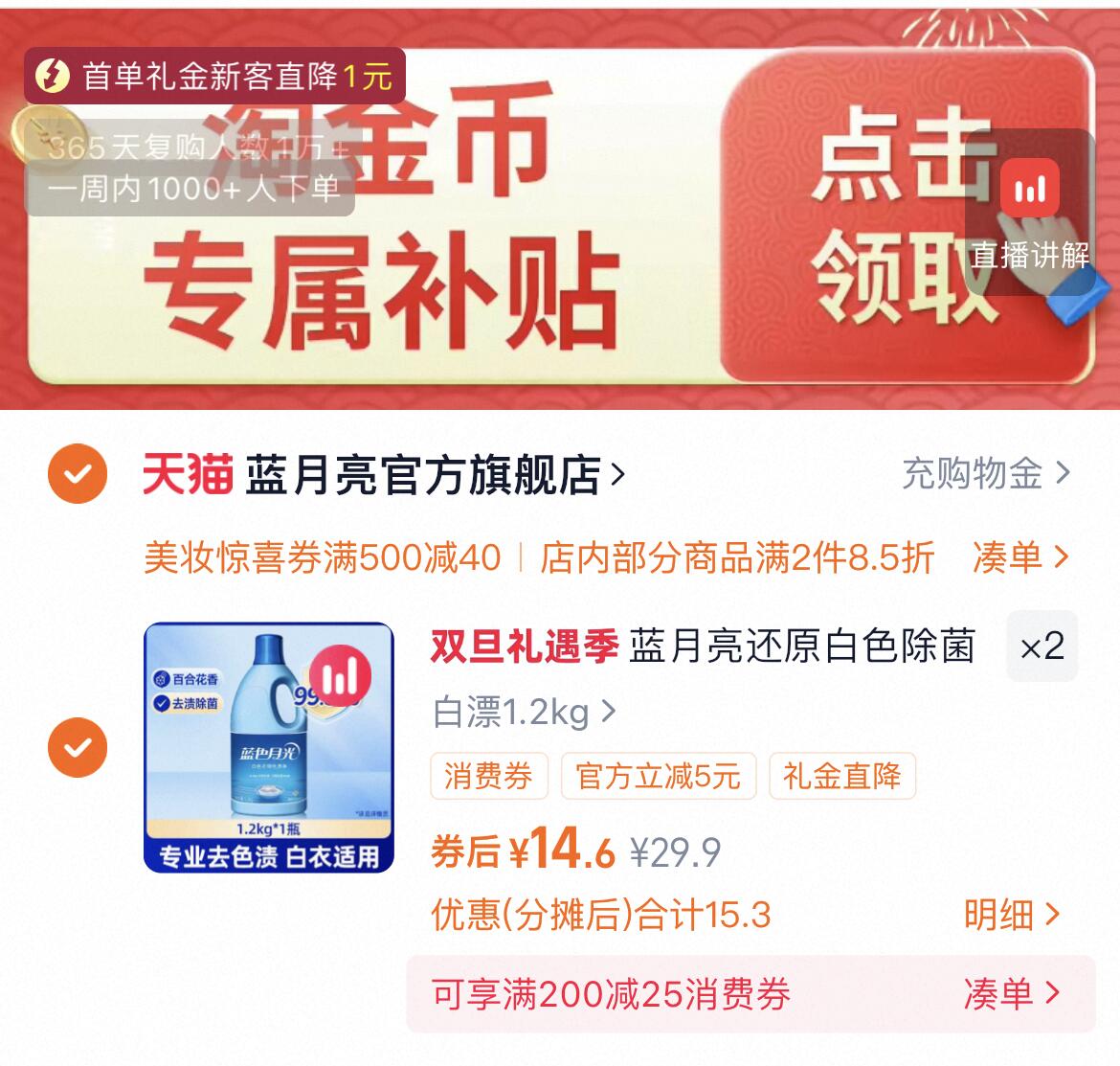 反復领2次劵 下拉详情拍2件1.2kg选项,29亓 蓝月亮 好单发报员 2025年12月17日 23:54 0 举报 反復领2次劵下拉详情拍2件1.2kg选项,29亓蓝月亮https://m.tb.cn/h.7dxYk2x 复制文案