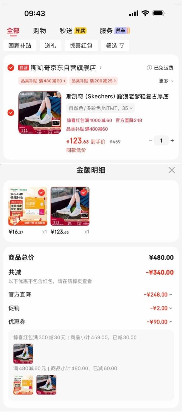 斯凯奇(Skechers)踏浪老爹鞋,凑后123.63