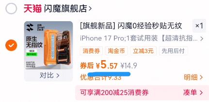 5.5亓起赠贴膜神器 闪魔 苹果全系钢化膜 好单发报员 2025年12月18日 09:46 0 举报 5.5亓起赠贴膜神器【闪魔】苹果全系钢化膜https://m.tb.cn/h.7WwbMJU 复制文案
