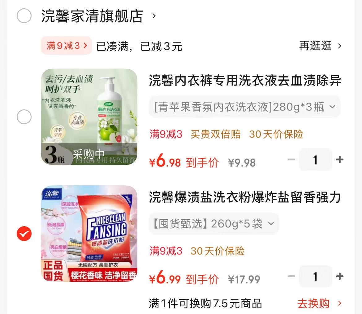 浣馨 内衣裤专用洗衣液280g*3瓶【6.9】