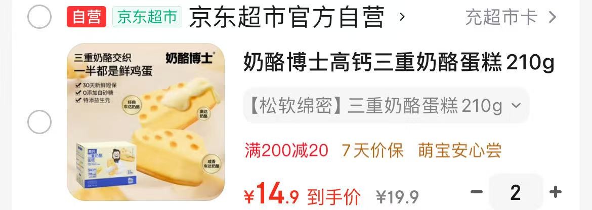 奶酪博士 高钙三重奶酪蛋糕210g 0添加益生元,拍2件【29】